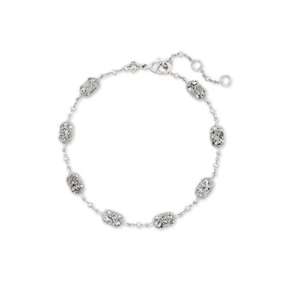 The Emilie Silver Link Bracelet in Platinum Drusy is designed with mini, classic KS shapes linked by a shimmery metallic satellite Chain. Layer for a little extra something in your minimalist stack!